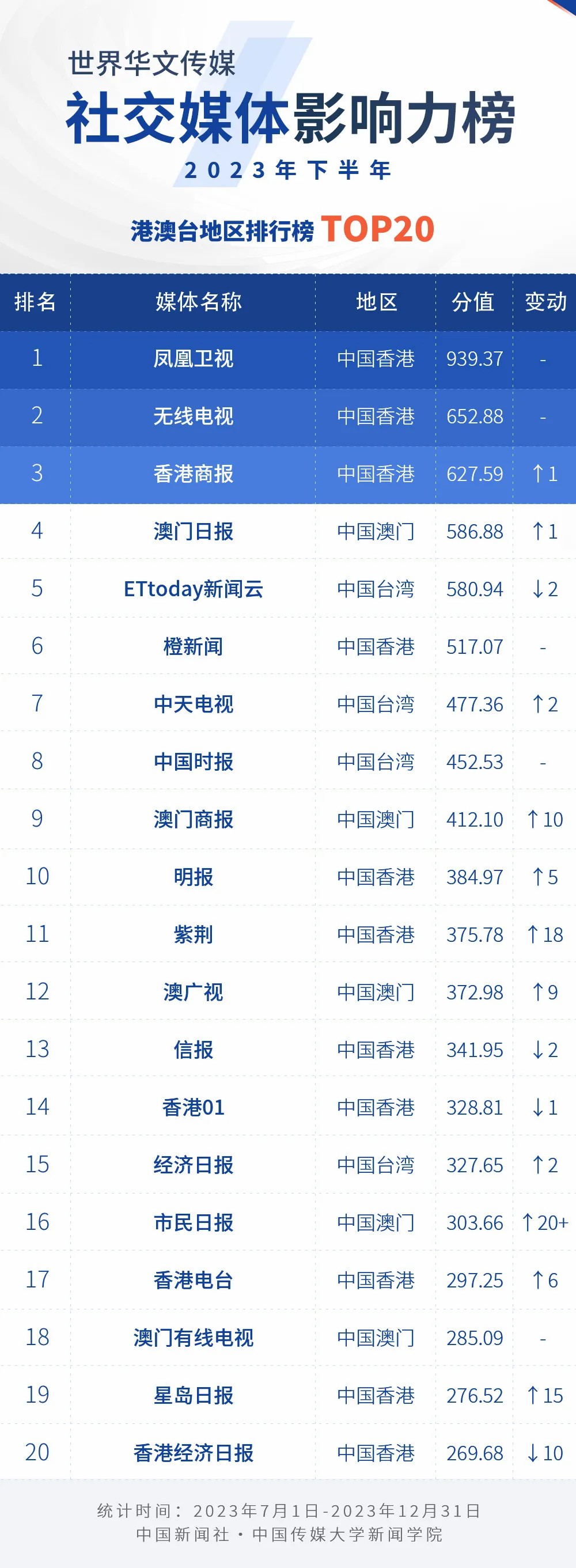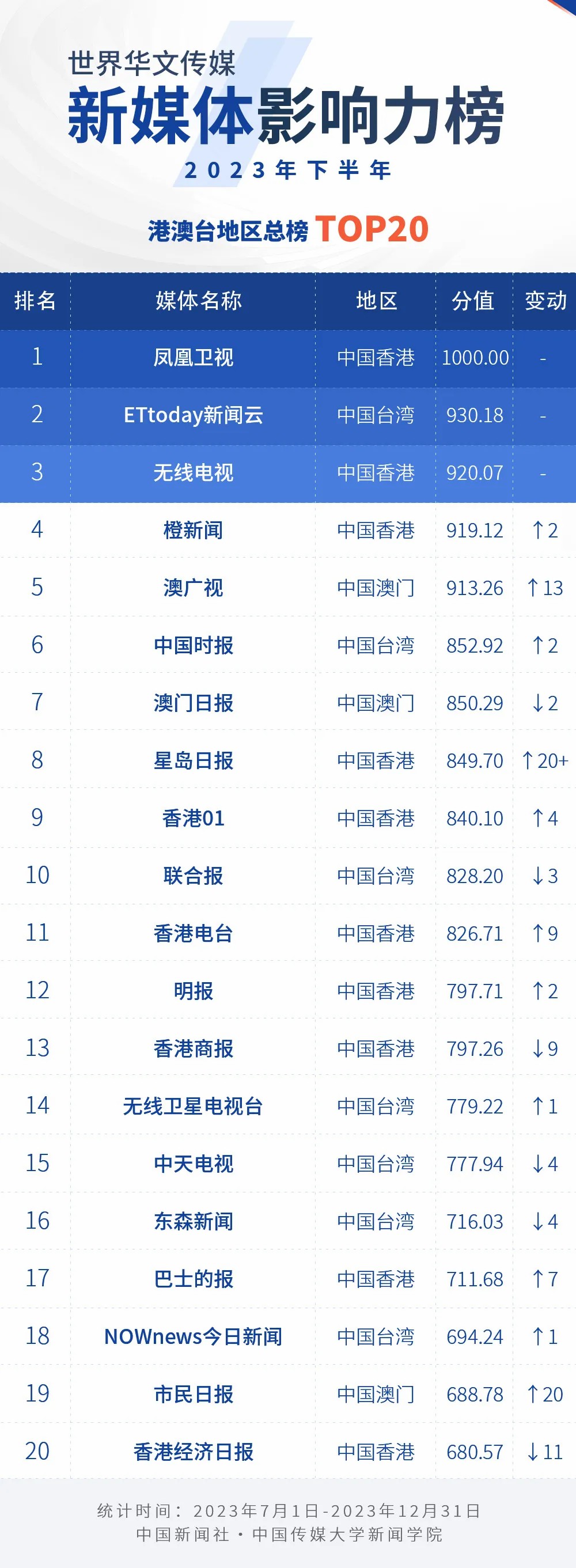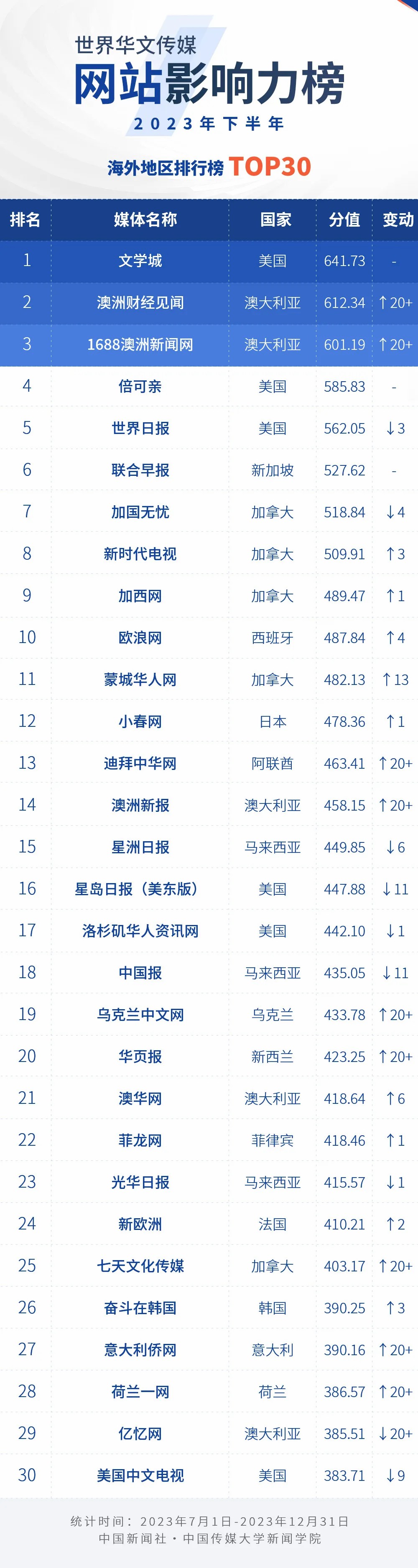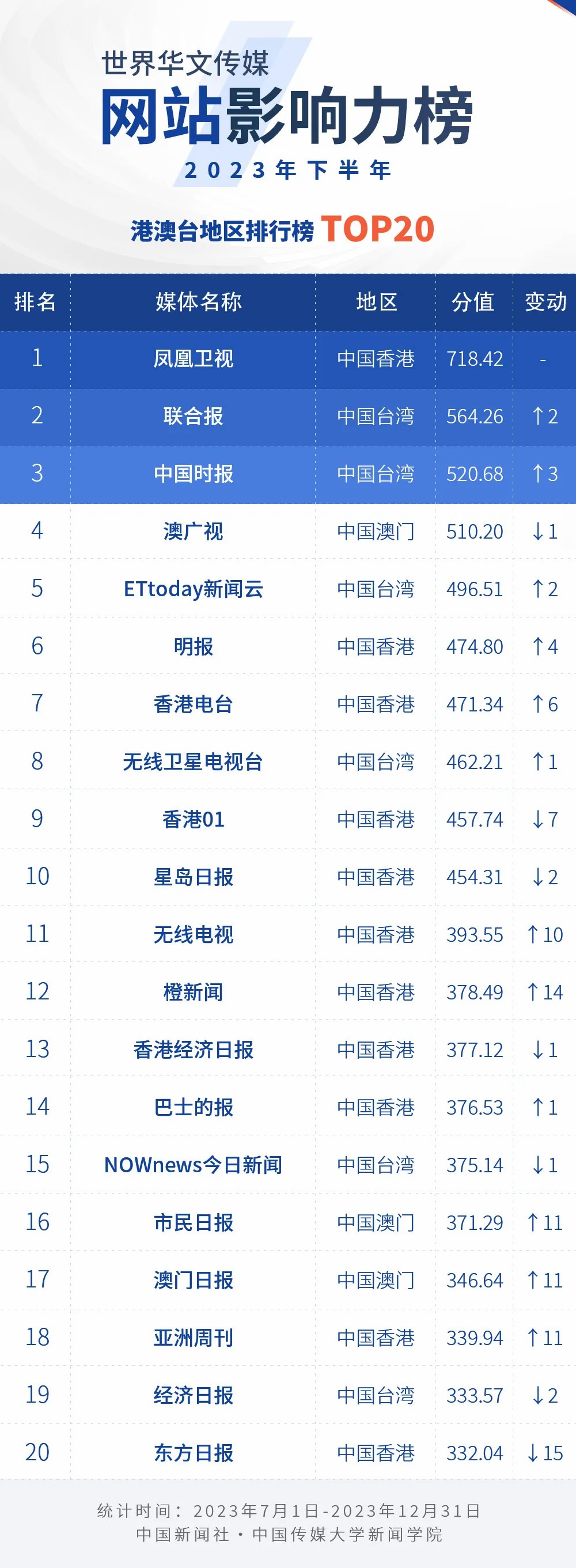 中國新聞社與中國傳媒大學新聞學院持續(xù)開展“世界華文傳媒新媒體影響力”測評項目,現根據2023年下半年世界華文傳媒新媒體的業(yè)務數據,發(fā)布2023年下半年榜。