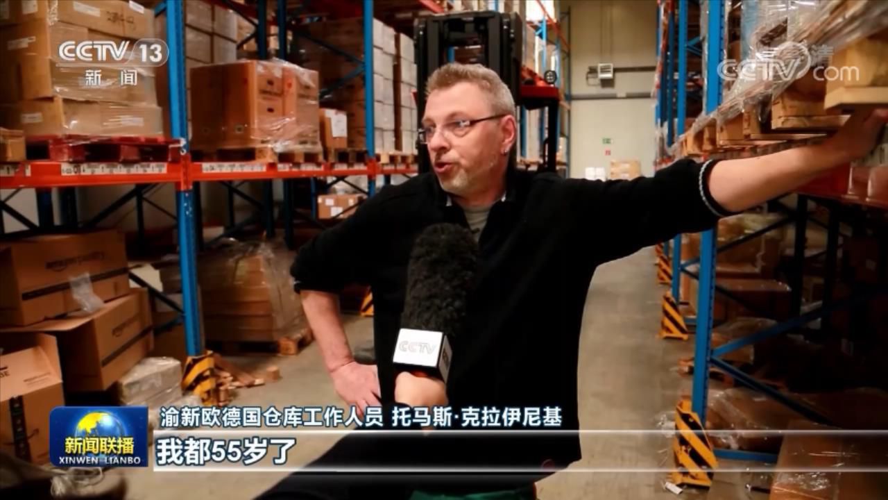 渝新歐德國(guó)倉(cāng)庫(kù)工作人員 托馬斯·克拉伊尼基:我從2019年9月開(kāi)始在這里工作,現(xiàn)在明顯感覺(jué)活變多了。從小的輕工業(yè)產(chǎn)品到大的機(jī)械,應(yīng)有盡有。我都55歲了,竟然還能獲得一份固定的工作合同,這在德國(guó)可不常見(jiàn)。