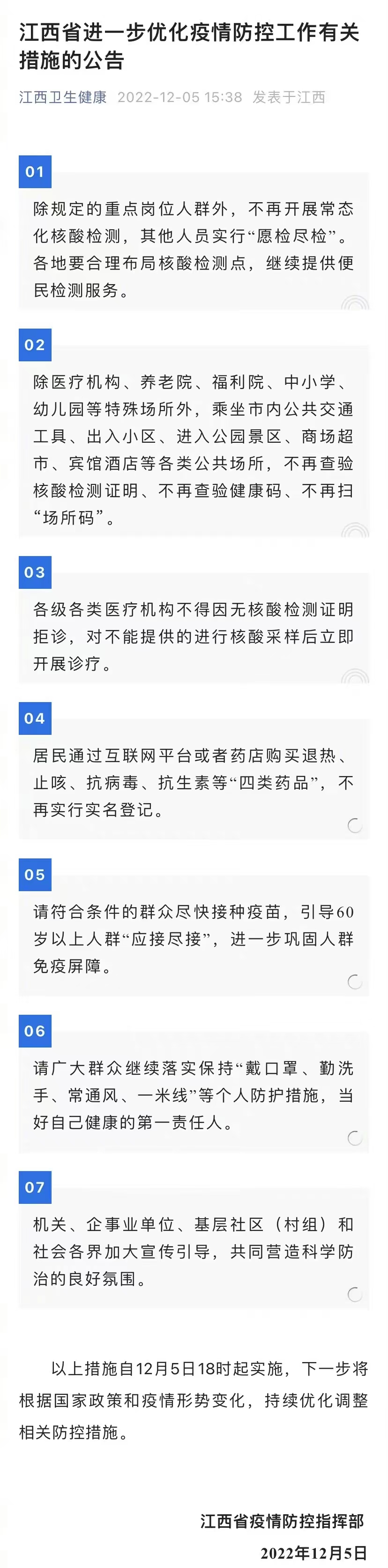 《江西省進一步優(yōu)化疫情防控工作有關(guān)措施的公告》截圖