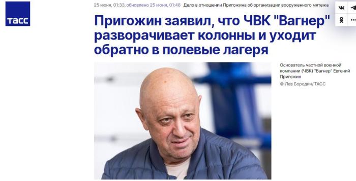 據(jù)報(bào)道,普里戈任在發(fā)布的音頻中稱,“瓦格納”在一天內(nèi)行進(jìn)至距離莫斯科不到200公里的地方,期間“瓦格納”的士兵沒(méi)有流一滴血,但現(xiàn)在“可能造成流血的時(shí)刻已經(jīng)到來(lái)”,因此“瓦格納”調(diào)轉(zhuǎn)縱隊(duì),“按計(jì)劃調(diào)轉(zhuǎn)方向返回營(yíng)地”。