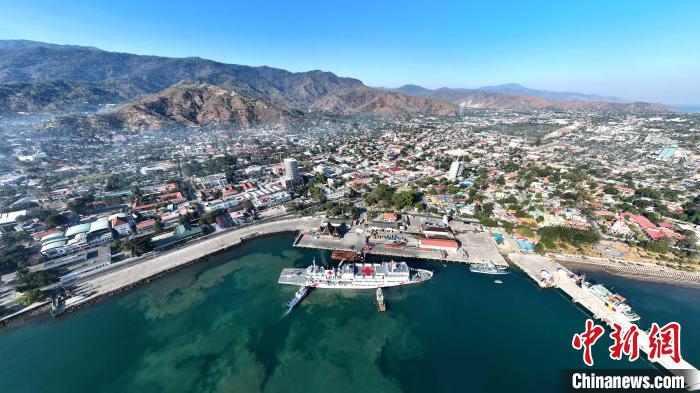 9月3日上午,正在執(zhí)行“和諧使命-2023”任務(wù)的中國(guó)海軍“和平方舟”號(hào)醫(yī)院船抵達(dá)東帝汶帝力港,開始為期7天的友好訪問(wèn)和醫(yī)療服務(wù)。圖為醫(yī)院船靠泊東帝汶帝力港碼頭。桂江波 攝