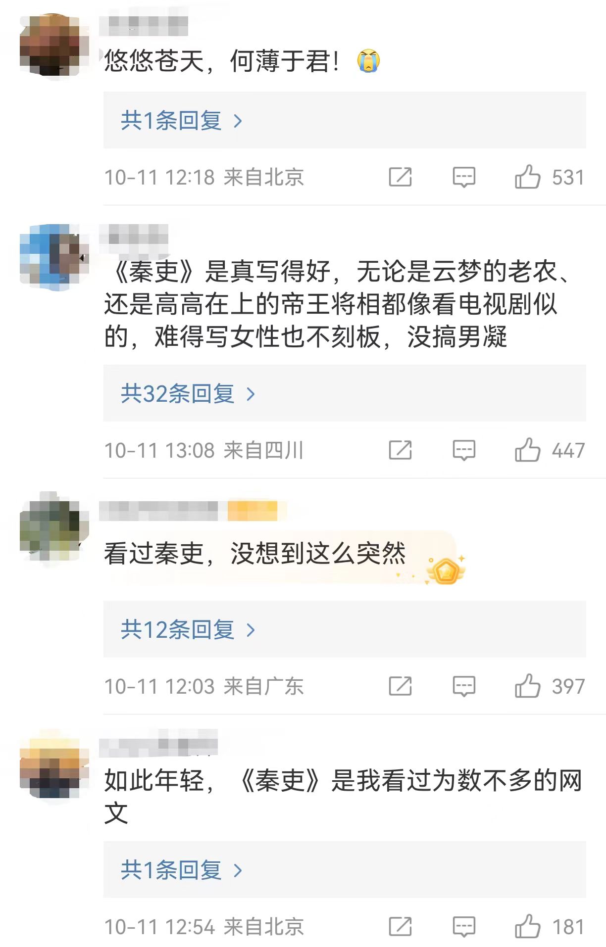 閱文集團(tuán)發(fā)布的訃告里寫道:“七月新番一生赤誠(chéng),專注。他有志于循中國(guó)歷史脈絡(luò),由遠(yuǎn)及近,針對(duì)各個(gè)歷史時(shí)期完成相應(yīng)的故事創(chuàng)作。為此,他嚴(yán)謹(jǐn)推敲,細(xì)致考據(jù),從極少作家涉足的春秋戰(zhàn)國(guó)題材起筆,扎實(shí)書寫秦、漢故事。他所塑造的黑夫、任弘、第五倫等角色,燦爛鮮活,引讀者共鳴、共情,如今中斷于三國(guó)篇,我們深感悲痛、遺憾。”