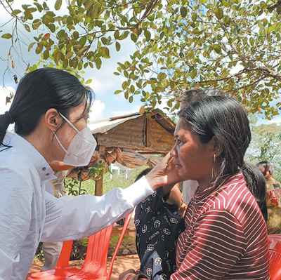 2022年3月,由中國中醫(yī)科學(xué)院西苑醫(yī)院醫(yī)生為主體的中國援柬中醫(yī)醫(yī)療隊抵達(dá)柬首都金邊,開始為期1年的醫(yī)療服務(wù)工作。今年1月,醫(yī)療隊來到桔井省,為當(dāng)?shù)孛癖娺M(jìn)行義診,許多人慕名前來檢查身體。“聽村里人說,中國醫(yī)療隊的口碑非常好,治好了很多患者,我就想帶女兒去試試?!蓖⒍U達(dá)的母親孔吉棉告訴記者。