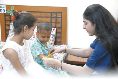 考慮到兒童病患的特殊性,“小家”一直將孩子們的心理疏導(dǎo)作為志愿工作的重點(diǎn)。“孩子們的心理狀態(tài)很重要。”“小家”巴方負(fù)責(zé)人蘇比婭·阿德南說。阿德南有30多年的兒童公益服務(wù)經(jīng)歷,在她和巴中兩國同事的引導(dǎo)下,孩子們相互鼓勵支持,在閑暇時制作各種手工藝品布置“小家”。