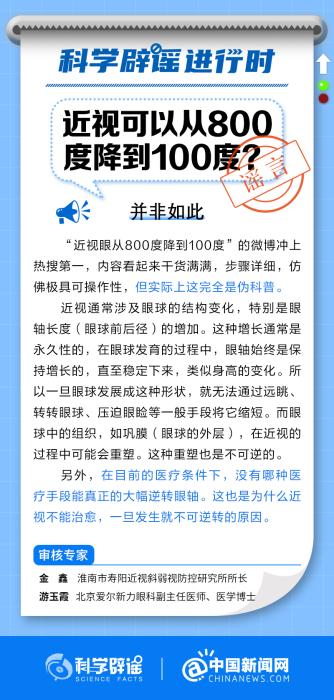 中新網(wǎng)1月11日電 話題“近視眼從800度降到100度的過程”登上熱搜榜,有博主表示通過“視覺恢復(fù)的閃現(xiàn)技巧”可逐漸恢復(fù)視力。對(duì)此專家表示,內(nèi)容看起來干貨滿滿,步驟詳細(xì),仿佛極具可操作性,但實(shí)際上這完全是偽科普。