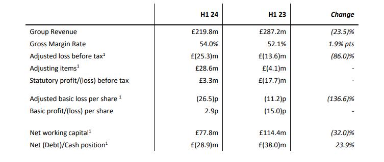 1月26日,Superdry發(fā)布半年報稱,在截至2023年10月28日的26周內(nèi),集團(tuán)收入為2.198億英鎊,同比下滑23.5%。調(diào)整后稅前虧損為2530萬英鎊,同比上升86%。