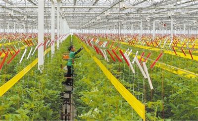 大棚管理員朱丙光介紹:“這里配備了智能溫度控制系統(tǒng),可以根據(jù)溫度自動放風(fēng),通過網(wǎng)絡(luò)和電子監(jiān)控設(shè)備,對水肥實施精確管控,保障了作物的口感和品質(zhì)。以西紅柿為例,一年下來,一個大棚總產(chǎn)量達(dá)到1萬斤左右,收入20萬元?!?/p>