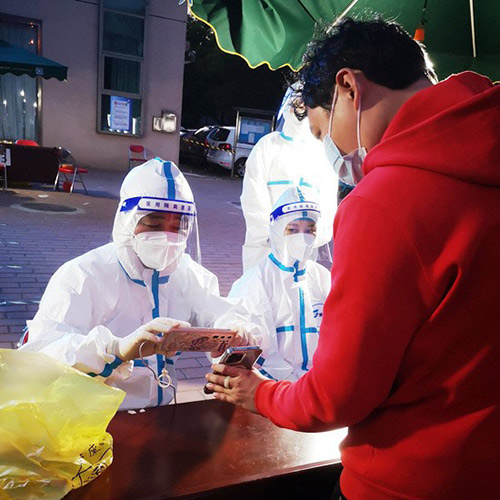 “第一次穿上‘大白服’有點不適應(yīng),從早到晚不停呼喊,白班夜班交替,有時飯來不及吃。當有人對我說謝謝‘大白’時,我特別開心?!奔紟煂W(xué)院志愿者劉許說?!拔逡弧奔倨冢本╇娍?0名下沉干部承擔所在核酸檢測點維持秩序、衛(wèi)生消殺、身份證登記等工作。他們說:“我們度過了一個不同尋常的‘五一’,這個勞動節(jié)過得特別有意義。”
