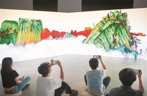 人工智能山水圖、可實(shí)時(shí)互動(dòng)的抽象畫(huà)、沉浸式體驗(yàn)的5G山水畫(huà)卷……眾多充盈“黑科技”元素的藝術(shù)作品,打造出充滿(mǎn)古意而又嶄新的文化盛宴,帶領(lǐng)觀眾體驗(yàn)沉浸式和流動(dòng)式的藝術(shù)畫(huà)卷,感受“有聲、有色、有全景”的超高清沉浸式視聽(tīng)體驗(yàn)。