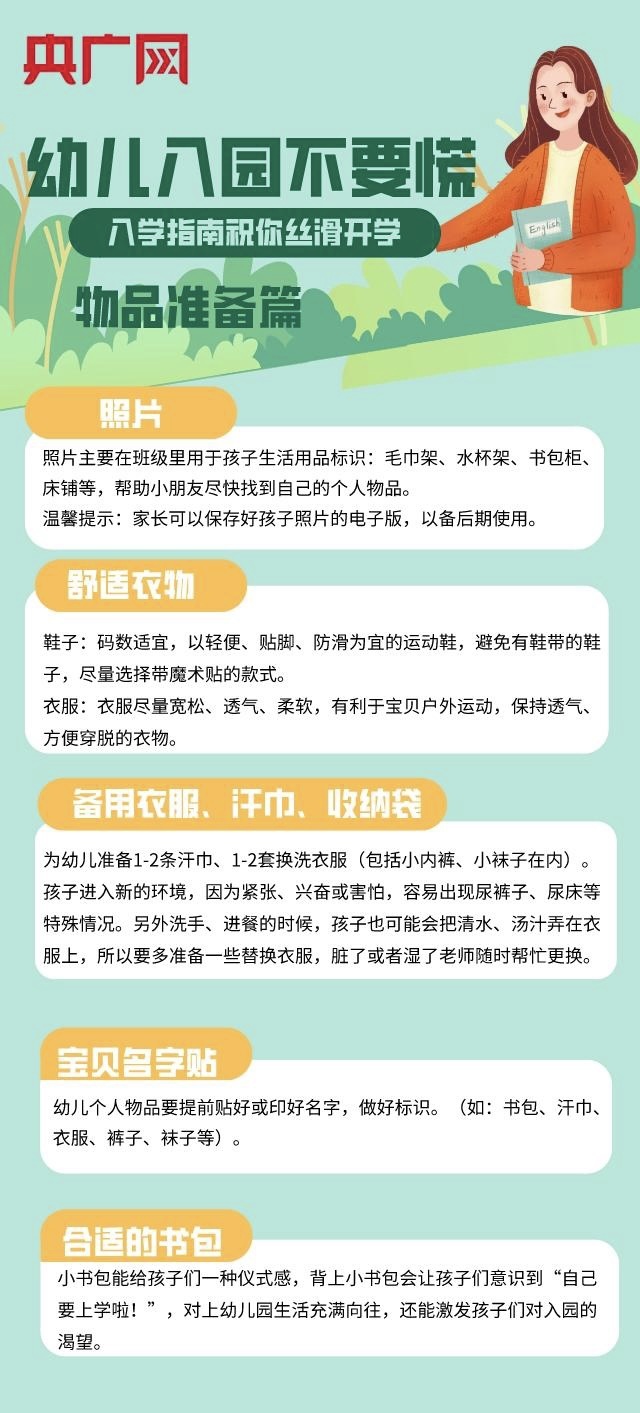 央廣網(wǎng)北京8月27日消息 幼兒園是人生的第一所學(xué)校,在這里,孩子們將開啟真正的學(xué)習(xí)生活和社會生活。可以說,這一階段對于孩子的性格塑造和習(xí)慣養(yǎng)成都有著十分重要的影響。那么幼兒入園前,新手爸媽應(yīng)該做好哪些準備工作呢?別慌,這份入學(xué)指南請收藏!