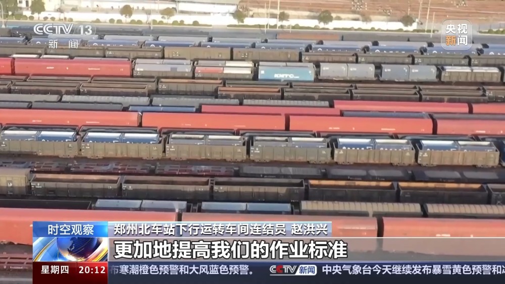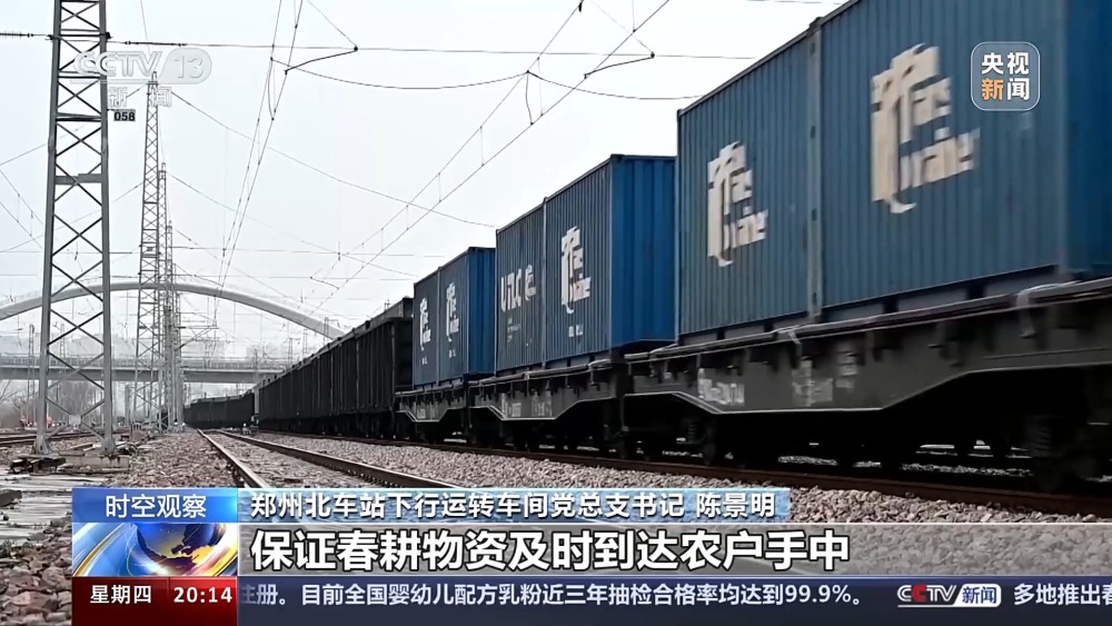 總臺央視記者 蔣樹林:這里是鄭州北車站,也是全國作業(yè)量最大的編組站,大家看我眼前這個(gè)車?yán)锩嫜b的就是當(dāng)下春耕所急需用的化肥原料,作業(yè)還在加班加點(diǎn)地往前推進(jìn)。