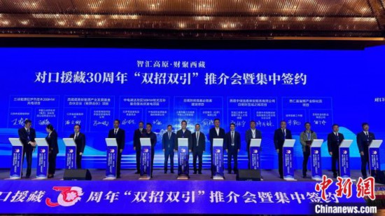 對(duì)口援藏30周年“雙招雙引”推介會(huì)暨集中簽約活動(dòng)15日在拉薩舉行。此次推介會(huì)集中簽約援藏招商引資項(xiàng)目18個(gè)、協(xié)議投資104.07億元(人民幣,下同)。