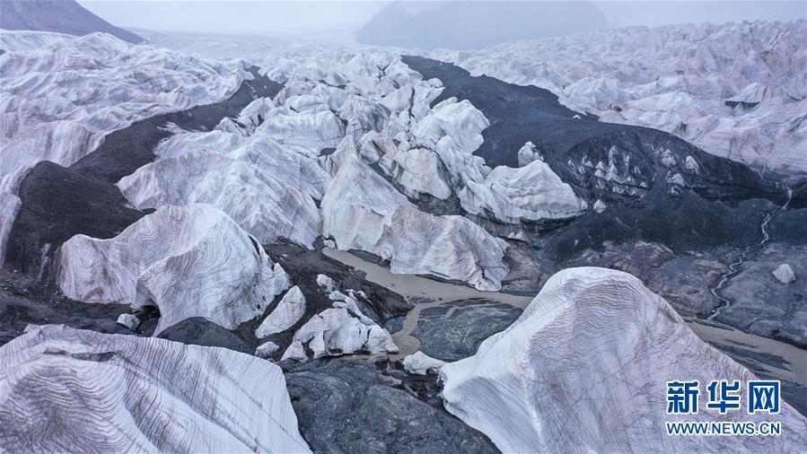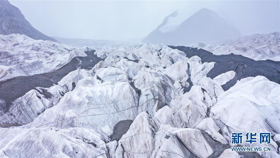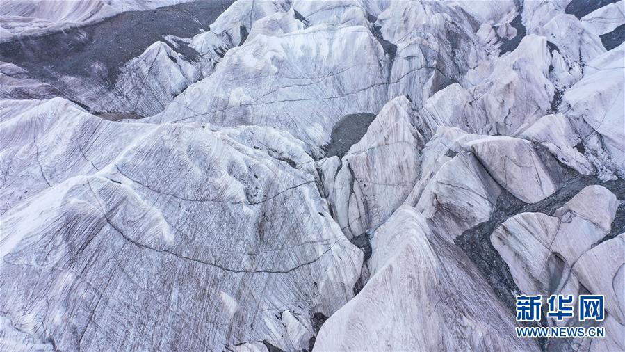 這是8月15日拍攝的崗加曲巴冰川(無人機(jī)照片)。 位于青海省玉樹藏族自治州的崗加曲巴冰川,坐落于長江源園區(qū)的各拉丹冬雪山東坡,從空中俯瞰,層疊的冰塔顯得尤為壯觀。 新華社記者 吳剛 攝 圖片來源:新華網(wǎng)