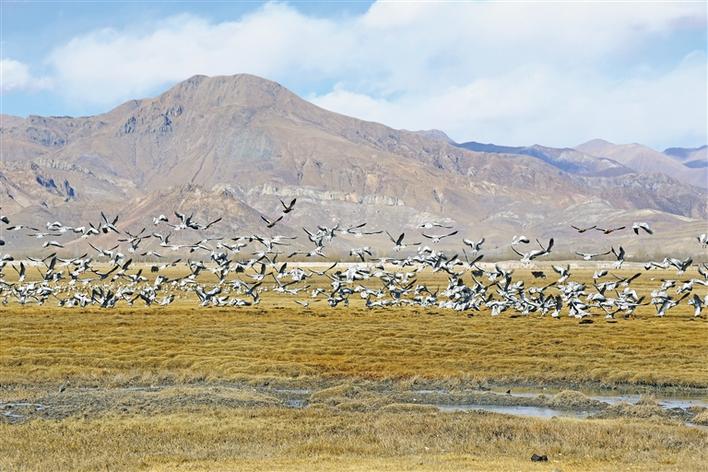 43歲的藏族女巡護(hù)員格桑卓瑪,指著不遠(yuǎn)處說(shuō)起了變化:“以前鳥(niǎo)很怕人,數(shù)量也不多,現(xiàn)在,鳥(niǎo)不怕人,以地里青稞穗為食,都到這里來(lái)越冬。”