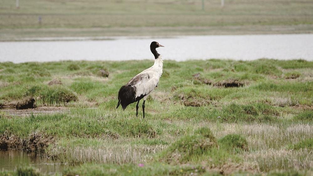 玉樹隆寶濕地的黑頸鶴。