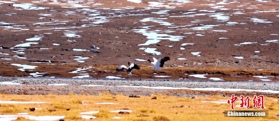 圖為兩只黑頸鶴嬉戲打鬧。馬志原 攝