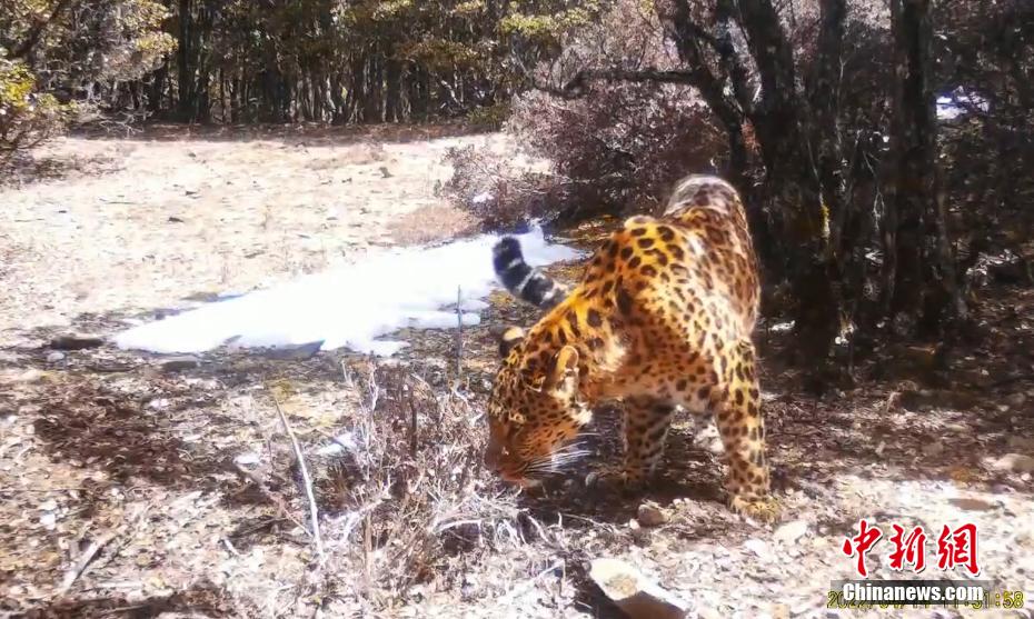 近日,木里縣博窩鄉(xiāng)野保監(jiān)測團(tuán)隊,發(fā)布了一批木里縣部分野生動物的照片和視頻。該團(tuán)隊自2017年成立以來,堅持在博窩鄉(xiāng)開展紅外線相機(jī)監(jiān)測工作,現(xiàn)有23名成員,在野外安裝有185臺紅外相機(jī)。圖為金錢豹。 木里縣博窩鄉(xiāng)野保監(jiān)測團(tuán)隊 供圖