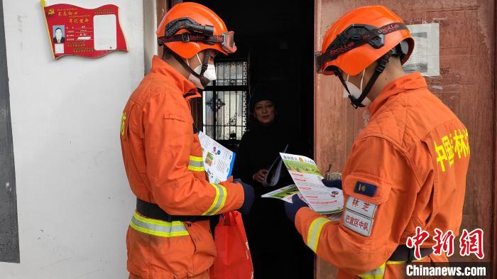 圖為森林消防員走村入戶防火宣傳?!×种ナ猩窒拦﹫D