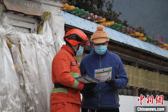 圖為森林消防員在景區(qū)重點(diǎn)區(qū)域普及防火知識(shí)?!×种ナ猩窒拦﹫D