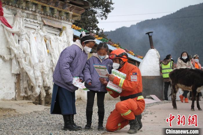 圖為森林消防員為駐地民眾科普防火知識(shí)?!×种ナ猩窒拦﹫D