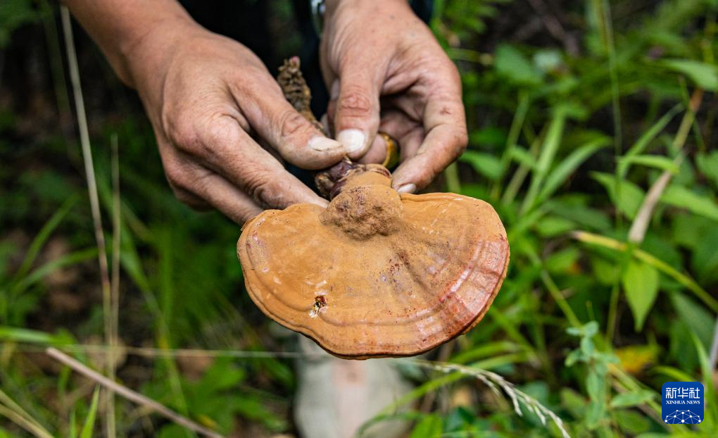 朗歐村民在林下種植的靈芝(9月9日攝)。新華社發(fā) (丁增尼達(dá) 攝)