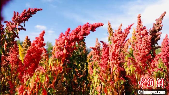 金秋十月,地處中國“聚寶盆”柴達木盆地腹地的青海省海西州烏蘭縣迎來藜麥成熟豐收季,姹紫嫣紅美不勝收。