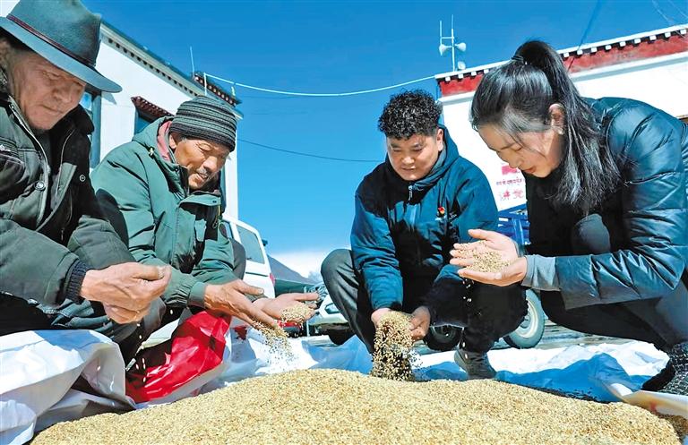 圖為拉薩市墨竹工卡縣農(nóng)業(yè)農(nóng)村局(農(nóng)業(yè)技術(shù)推廣站)技術(shù)人員在篩選種子。記者 唐斌 攝
