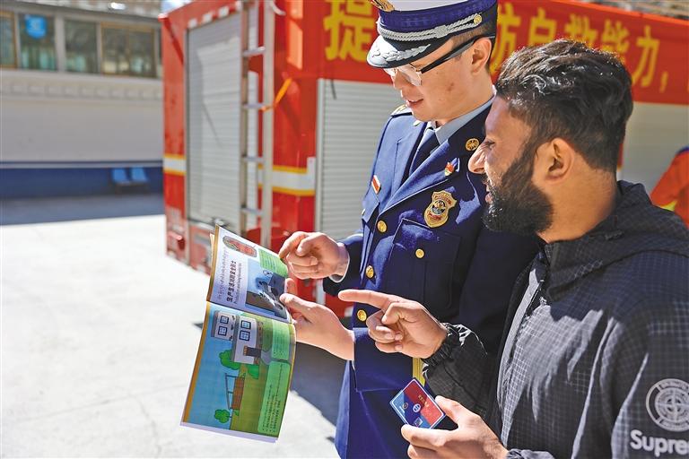 活動(dòng)向入境外籍游客和商人發(fā)放了中文、英文、藏文三種語言的消防宣傳資料,用英語向外籍游客和商人講解、演示滅火器材使用方法、常見火災(zāi)預(yù)防措施、火場逃生和急救常識(shí)等,并組織干粉滅火器實(shí)操、液化石油氣火災(zāi)處置和疏散逃生演練。