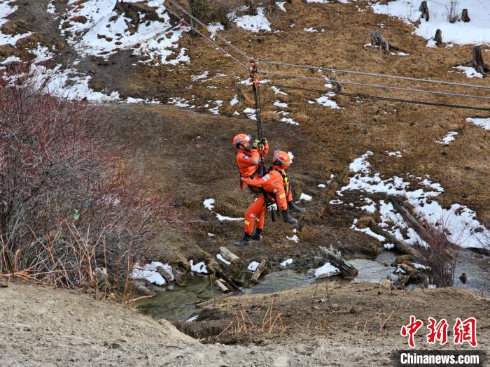 圖為拉練中開展繩索救助應(yīng)用實戰(zhàn)化訓(xùn)練。西藏林芝市森林消防支隊供圖