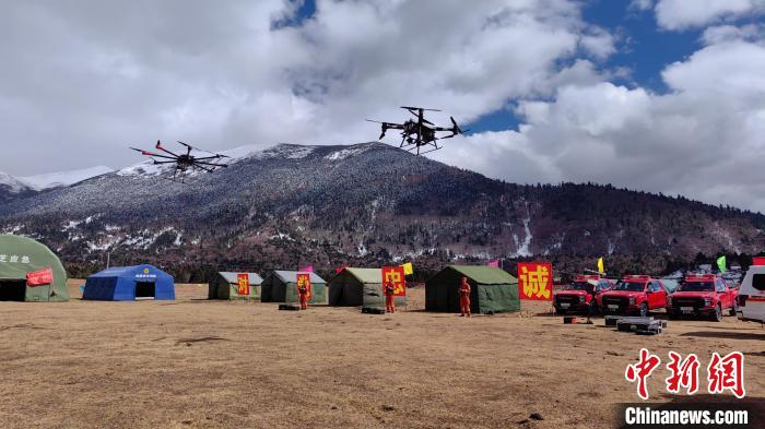 圖為拉練中開展無人機群編隊飛行訓(xùn)練。西藏林芝市森林消防支隊供圖