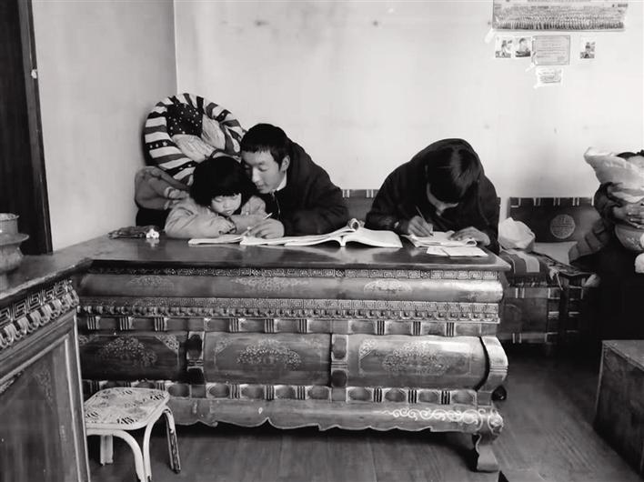 次仁羅布到縣里讀小學時,父母賣掉了村里的房子,陪他一起去了縣城,為了節(jié)省一點開支,將次仁羅布的弟弟和外甥女留在叔叔家中。到了縣城以后,他們租了一間只能容下三個人的小房子,就這樣父母陪他度過了一年的學習生活。為了改善家庭的經(jīng)濟狀況,父母也開始到各個地方擺攤做起了小生意,到處奔波了六年,才在縣城里蓋了一個小木房。