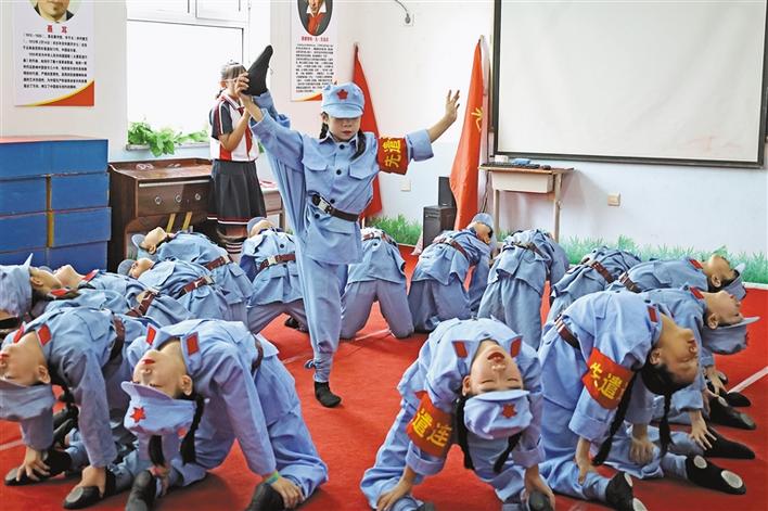 排練一場情景劇,并不容易。四年級學(xué)生李紫琪,用了兩個(gè)月的時(shí)間,背誦了多個(gè)版本的講解詞;18個(gè)孩子,課余時(shí)間參加排練,沒有一個(gè)孩子叫苦。