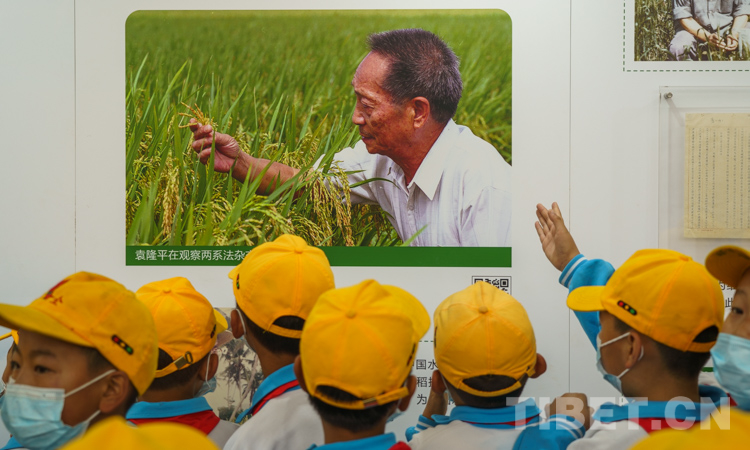一張張照片中,一位正在觀察水稻的老人學(xué)生們幾乎都認(rèn)識。“我知道袁隆平爺爺,是他讓人們不再餓肚子?!薄半m然現(xiàn)在糧食產(chǎn)量增加了,但我們還是要記住不能浪費糧食。” 學(xué)生們你一言我一語爭相發(fā)言。