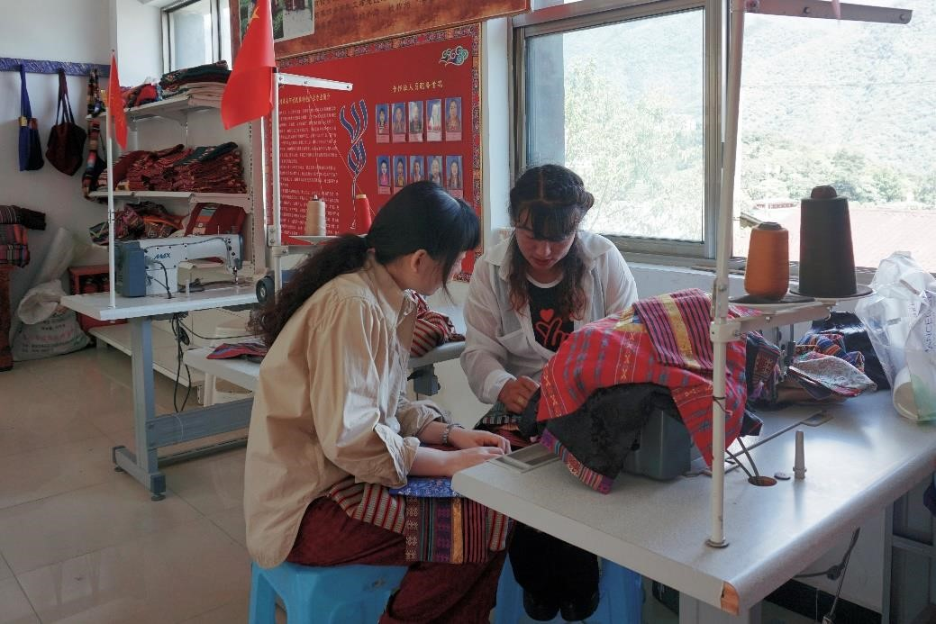 支隊成員向當?shù)厝藢W習民族服裝制作工藝