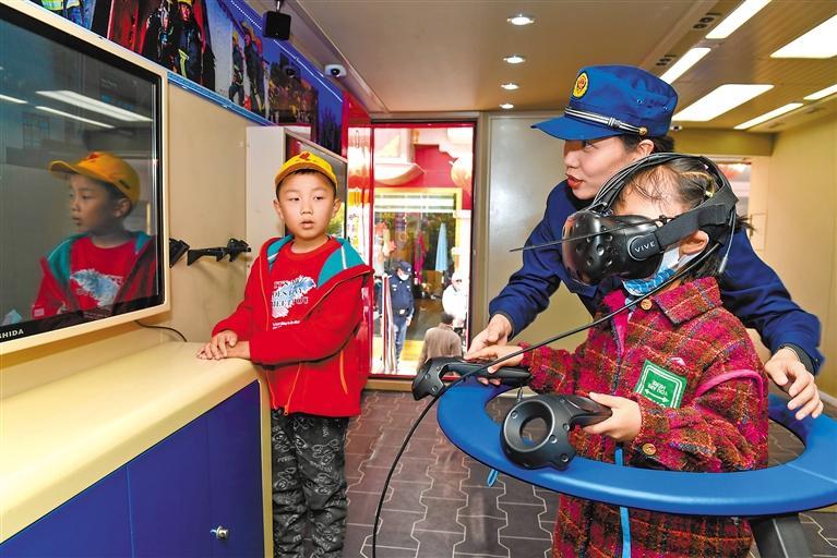 消防隊員借助VR模擬系統(tǒng),為孩子們講解防火防災知識。記者 丹增群培 攝