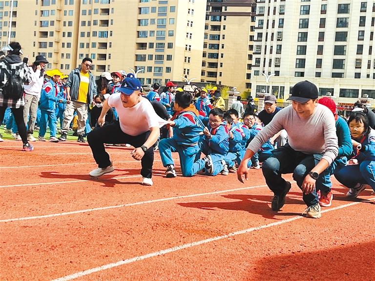 放飛春天的夢想,播撒希望的種子,為激發(fā)同學(xué)們對體育運動的興趣,豐富校園文化體育氛圍,促進家校之間的交流,讓孩子體驗到親子運動的快樂,近日,拉薩市第一小學(xué)教育城分校舉辦首屆親子趣味運動會。圖為學(xué)生及家長參加接力比賽。[詳細]