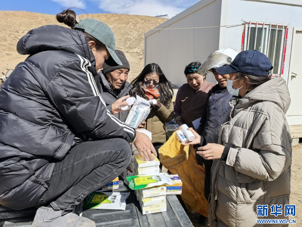 圖為措美縣農(nóng)牧服務(wù)中心技術(shù)人員向牧民發(fā)放常用獸藥。受訪者供圖