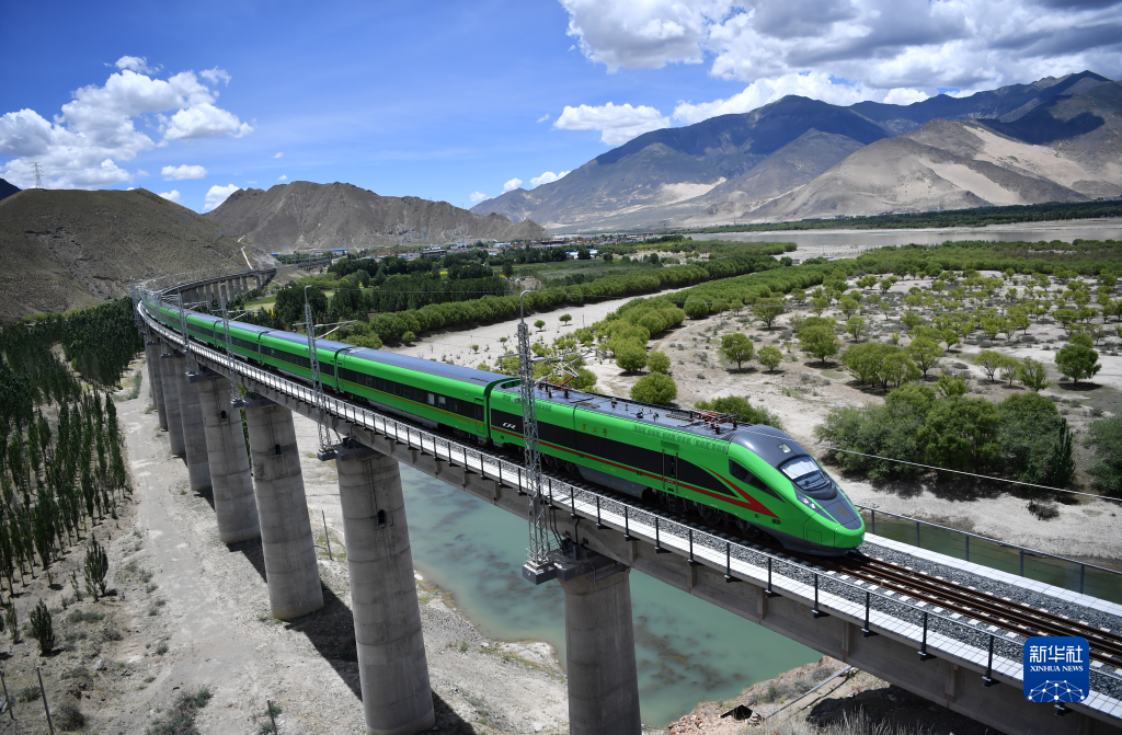 這是行駛在西藏山南市境內(nèi)的復(fù)興號(hào)列車。(2022年6月22日攝)。新華社記者 覺(jué)果 攝