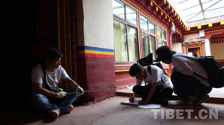 在十幾天的綜合科考活動中,科考團(tuán)隊的青年隊員們持續(xù)克服高原缺氧、路途顛簸和水土不服等各方面的困難,順利完成了綜合科考隊下達(dá)的每日科考任務(wù)。身處青藏高原的腹地,青年隊友們每天早上八點半從營地出發(fā),完成各類田野調(diào)查和測繪工作,歸來已經(jīng)是晚上的八、九點鐘。在吃過晚飯后,他們會著手整理每天的田野工作成果,直至深夜。在這樣的工作強度之下,青年隊員們最終完成了五個鄉(xiāng)鎮(zhèn)、八個行政村和二十一個自然村的共計六十棟古建筑的測繪工作。