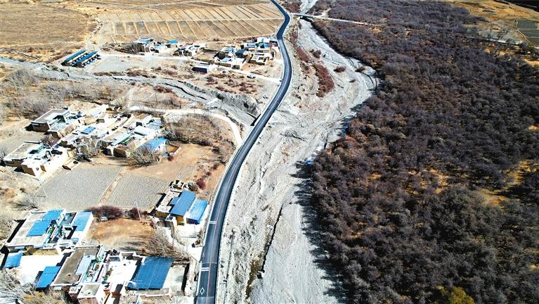 12月12日,山南市瓊結(jié)縣拉玉鄉(xiāng)鄉(xiāng)村旅游公路拓寬工程項(xiàng)目通車儀式在拉玉鄉(xiāng)白那村舉行。該公路長(zhǎng)度為10.18公里,路基寬度為7.5米,屬于三級(jí)公路,總投資3500萬(wàn)元。這條鄉(xiāng)村旅游公路的建成通車,不僅方便周邊村民出行,同時(shí)對(duì)開(kāi)發(fā)當(dāng)?shù)剜l(xiāng)村旅游資源具有重要價(jià)值。 拉玉鄉(xiāng)鄉(xiāng)村旅游公路(無(wú)人機(jī)照片)。本報(bào)記者 白瑪澤旺 攝