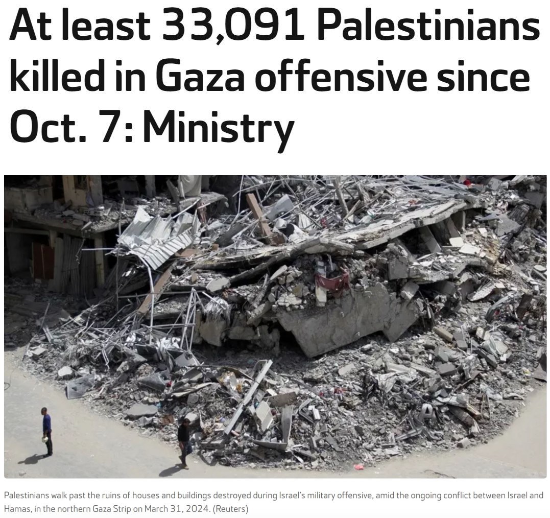 根據(jù)加沙衛(wèi)生部門當(dāng)?shù)貢r(shí)間5日提供的數(shù)據(jù),以色列在加沙地帶的軍事行動(dòng)已導(dǎo)致超過3.3萬(wàn)人死亡,超過7.5萬(wàn)人受傷,其中大部分是巴勒斯坦婦女和兒童。