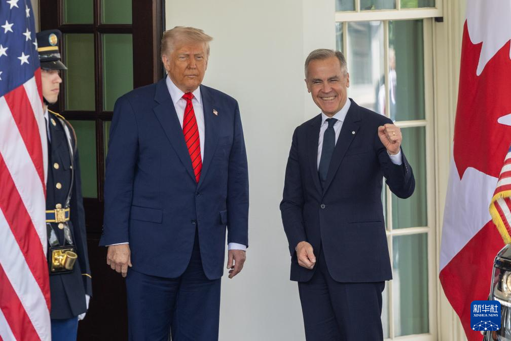 5月6日,美國總統(tǒng)特朗普(左二)在華盛頓白宮迎接到訪的加拿大總理卡尼。新華社記者 胡友松 攝