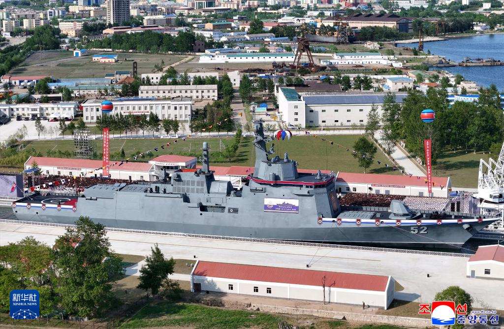 這是朝中社發(fā)布的朝鮮“崔賢”級二號艦下水儀式現(xiàn)場畫面。新華社/朝中社