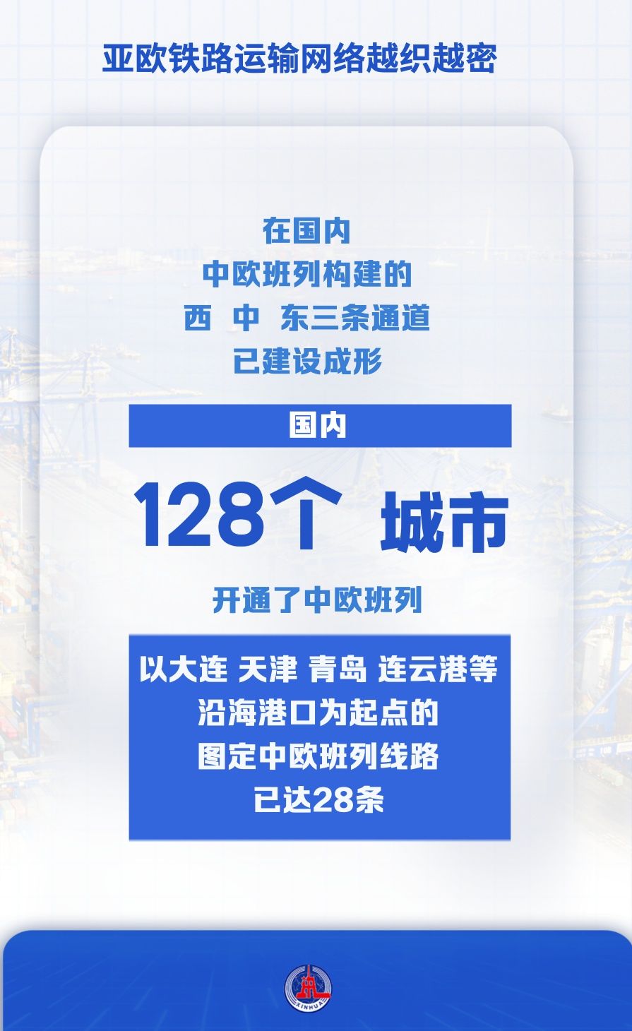 在境外,中歐班列與沿線(xiàn)國(guó)家持續(xù)推動(dòng)通道多元化發(fā)展,班列可通達(dá)歐洲26個(gè)國(guó)家229個(gè)城市以及11個(gè)亞洲國(guó)家超過(guò)100個(gè)城市。