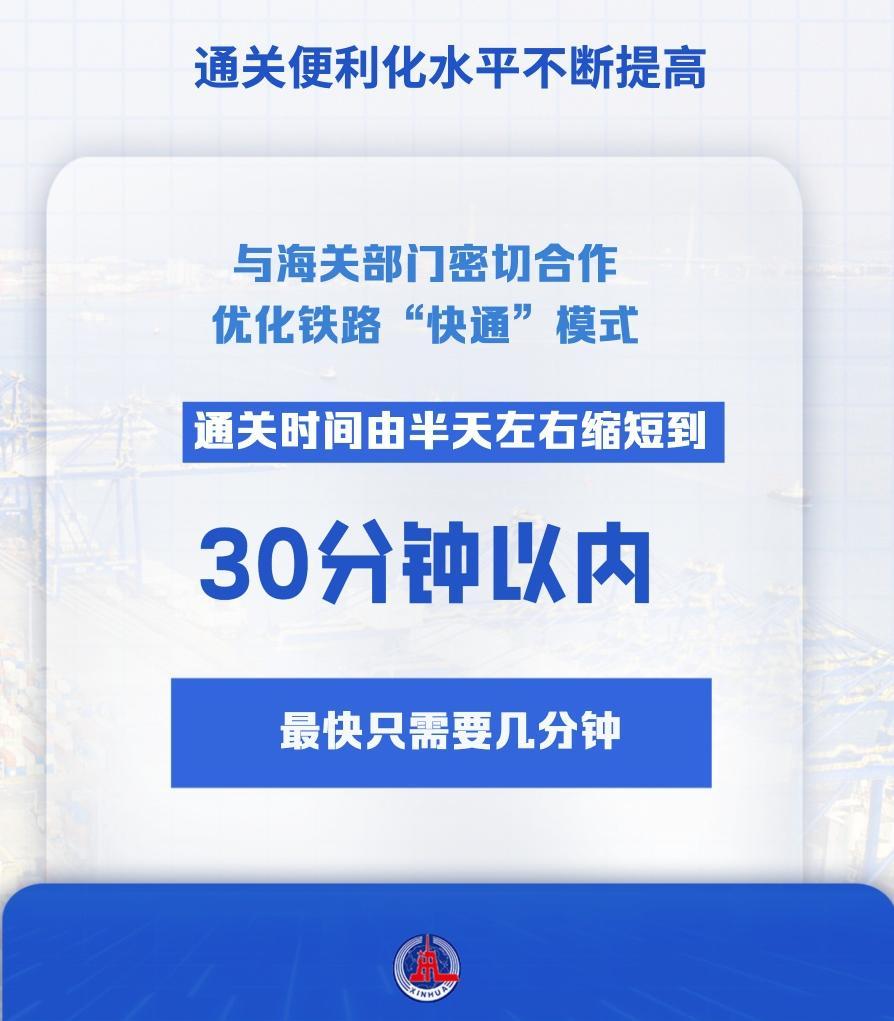 與海關(guān)部門(mén)密切合作,優(yōu)化鐵路“快通”模式,通關(guān)時(shí)間由半天左右縮短到30分鐘以?xún)?nèi),最快只需要幾分鐘。