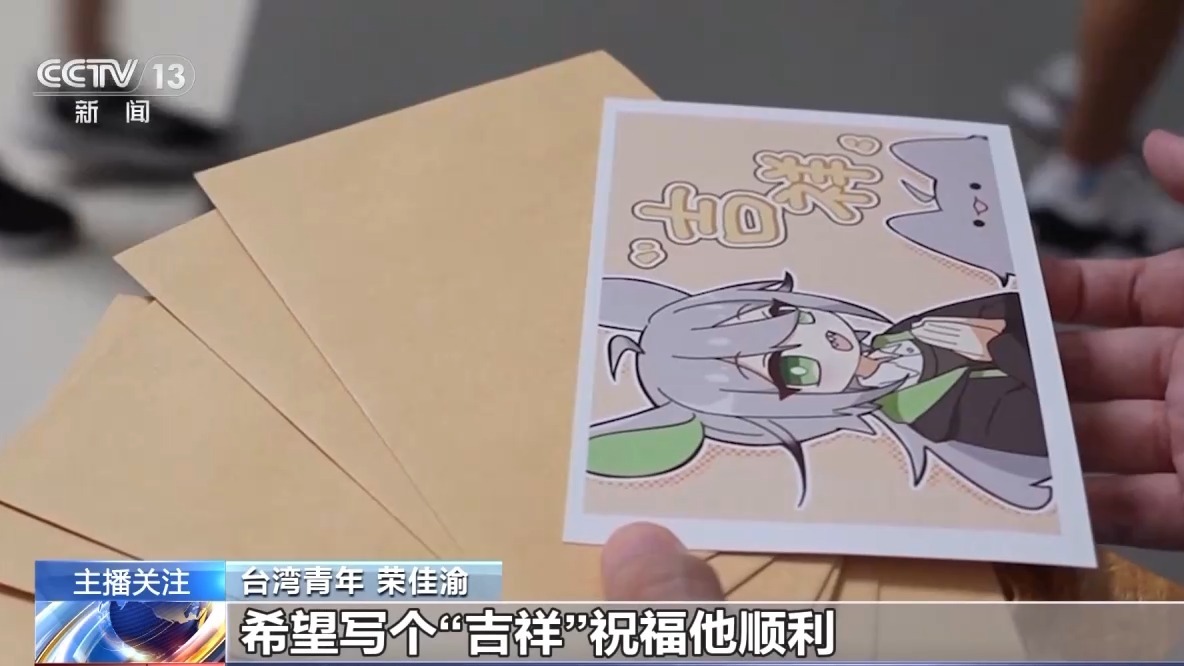 臺(tái)灣青年 榮佳渝:他跟我在介紹一些瓷器之類(lèi)的,可以源源不斷在那邊講,我就覺(jué)得好厲害,當(dāng)然也會(huì)希望繼續(xù)跟他交流,因?yàn)榭ㄆ潜容^有心意的東西,我就想自己手畫(huà)交給對(duì)方,寫(xiě)個(gè)“吉祥”祝福他順利。