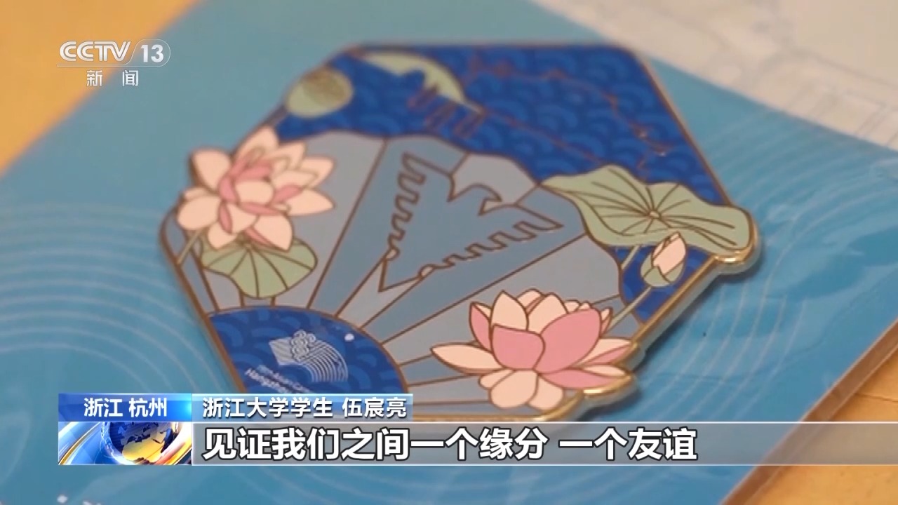 浙江大學(xué)學(xué)生 伍宸亮:這個(gè)徽章是浙江大學(xué)在去年的杭州亞運(yùn)會(huì)、亞殘運(yùn)會(huì)期間為志愿者設(shè)計(jì)的一個(gè)專(zhuān)屬的徽章,在徽章設(shè)計(jì)的過(guò)程中,它是全由我們同學(xué)自己設(shè)計(jì)的,也希望以這枚徽章,見(jiàn)證我們之間的緣分和友誼。
