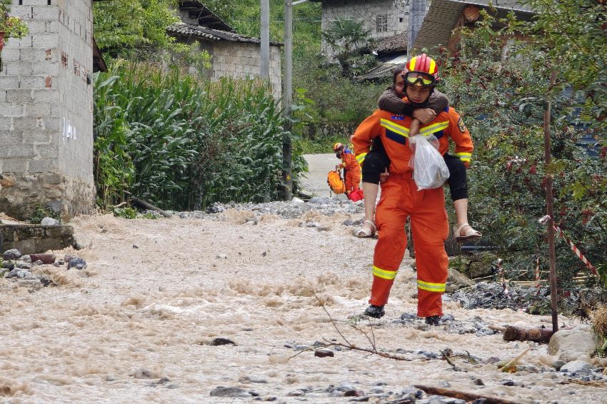 山洪過后,到處都是石頭、泥灘,救援隊伍只能走河床、山地、玉米地,還要穿過花椒林;當(dāng)不能兩人并排抬時,就一個人往前一點(diǎn)點(diǎn)送。