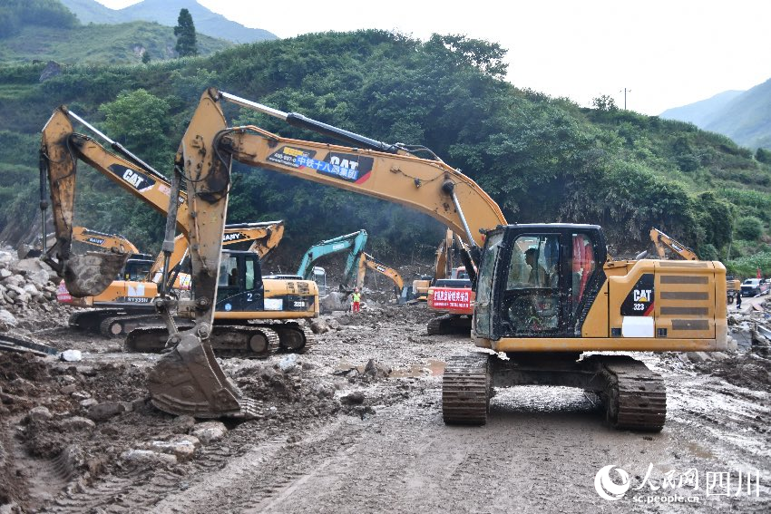 目前,挖掘機(jī)、裝載機(jī)和運(yùn)輸車輛在新華村不停穿梭,數(shù)十臺機(jī)械同時作業(yè),各項搶險救援工作仍在繼續(xù)進(jìn)行。