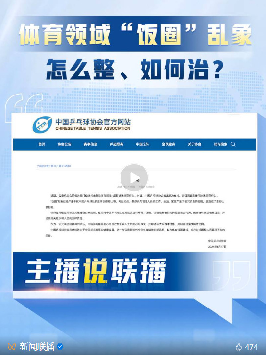 這兩天,中國乒協(xié)、中國體操協(xié)會相繼發(fā)聲,譴責體育領(lǐng)域的“飯圈”亂象。這一亂象到底該怎么整?如何治?點擊視頻↓↓↓